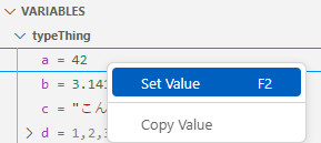 While the program is paused, you can evaluate code in the current context (see ‘Inspecting Simulation State’ above, for how the current context is determined). To set simple variables (numbers and strings), click on the variable value in the call stack, right click it selecting “Set Value”