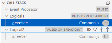 When you debug a project that uses logical processors, instead of getting a single call stack, you will see three.