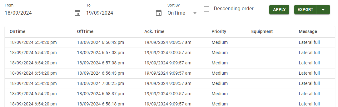 Descend order | Should the dates be sorted in descending order? | If checked, alarms will be sorted in descending order. |