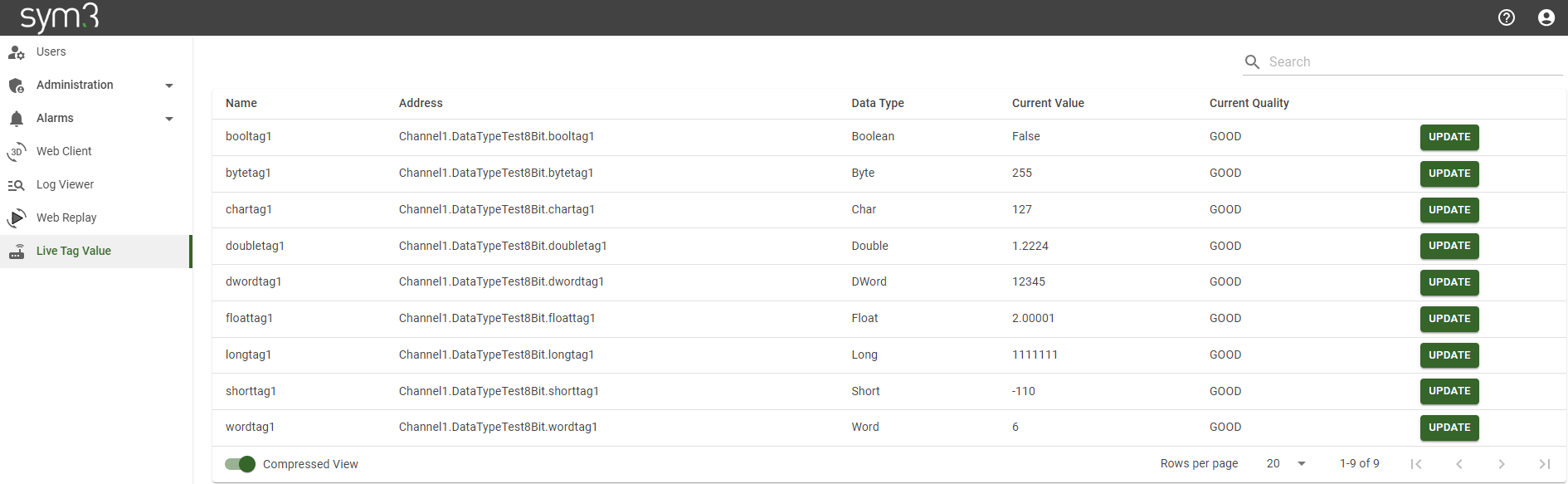 Only the user with ‘PlatformAdmin’ role can see the ‘UPDATE’ buttons. The button only available for the tags that are not simulated.