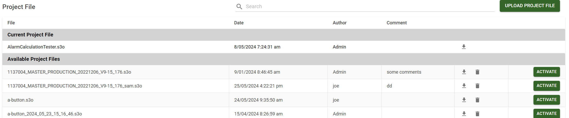 Clicking the “Upload New Project File” button will open a file browser. Choose the project to upload. An optional comment can be added. This comment isn’t used by Sym3, but is a place for you to put notes to make the file easier to distinguish later on.