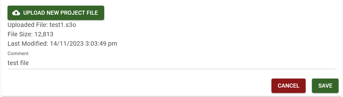 Once you’re happy with the project file and its comment (if any), click save. If you change your mind about uploading a project, click cancel.