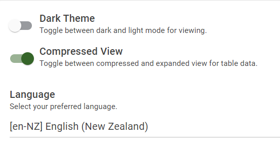 Click the button next to “Compressed View” to toggle the tables between compressed view and expanded view.