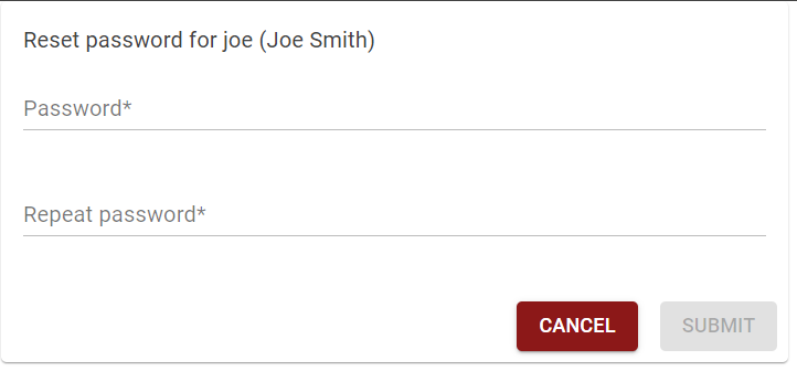 Click the ‘SUBMIT’ button to change the password, or ‘CANCEL’ to leave the password unchanged.