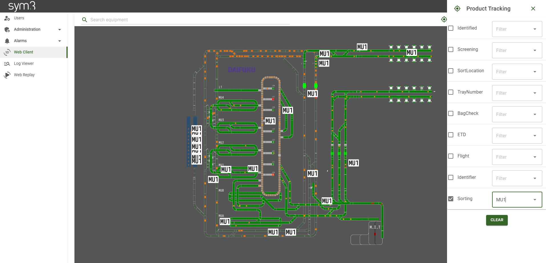 The product tracking panel generates the filter list based on the properties of the products in the 3D model.